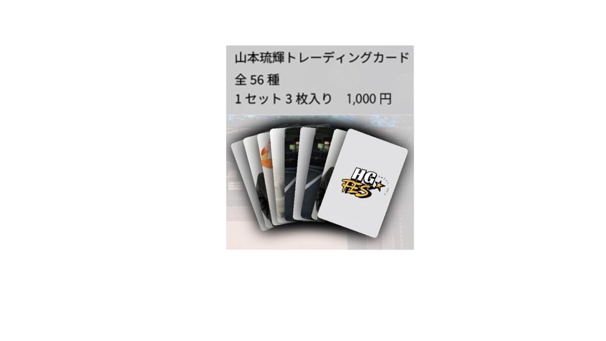 山本琉輝オリジナルトレーディングカードvol.3がついに登場しました。本商品は、山本琉輝の魅力を例えばした全56種類のカードで構成されています。コレクター心をくすぐるアイテムとなっております。